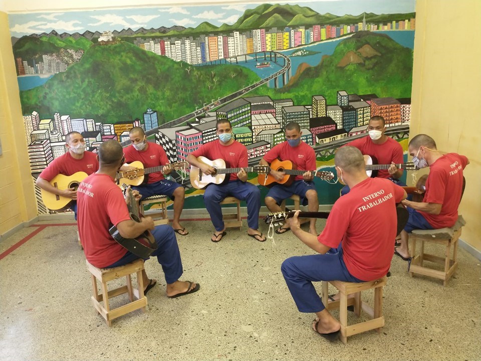 Aulas semanais de violão têm sido ministradas a 12 internos que cumprem pena na Penitenciária Estadual de Vila Velha 2, no Complexo de Xuri, em Vila Velha. O projeto musical teve início este mês como atividade recreativa e de ressocialização. Durante as aulas, internos aprendem partituras e notas musicais.