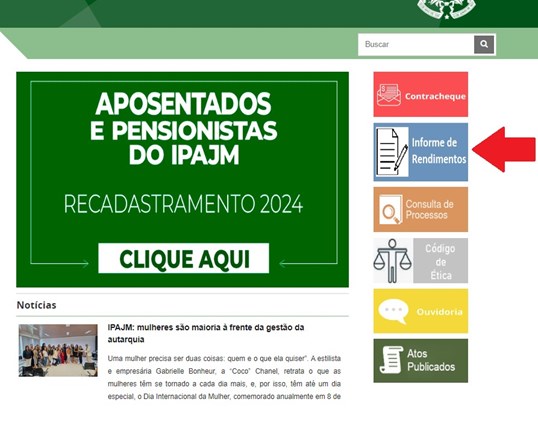 1. Clique no banner intitulado Informe de Rendimentos, localizado à direita da página do Instituto, conforme mostra imagem acima