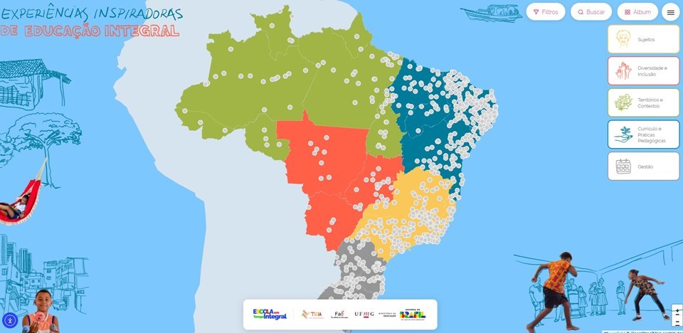 O Mapa de Experiências Inspiradoras está disponível para consulta pública no site: https://experienciaseduintegral.com.br/mapa/.
