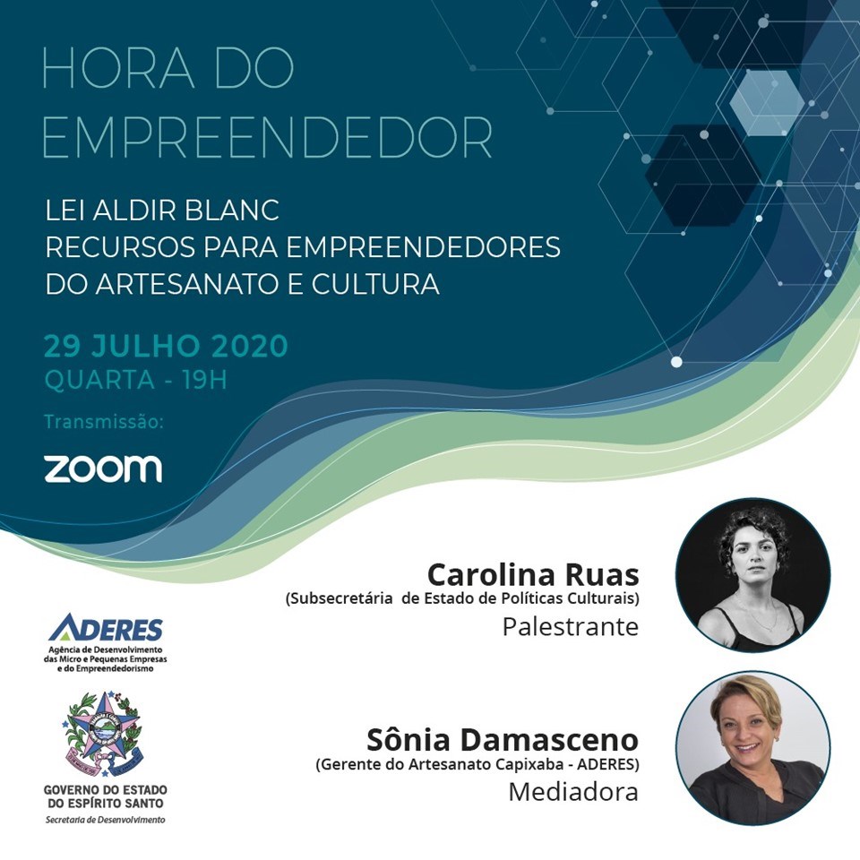 Trabalhadores ligados à cultura e ao artesanato e que perderam renda em função da crise provocada pela pandemia do novo Coronavírus (Covid-19) serão beneficiados com a sanção da Lei Aldir Blanc, que trata de ações emergenciais para o setor. O assunto será tema do Hora do Empreendedor, que acontece nesta quarta-feira (29), às 19 horas, por meio da plataforma Zoom.