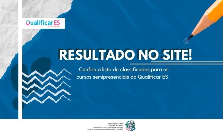 Foi publicada, nesta sexta-feira (06), a lista de classificados para as 120 vagas de cursos semipresenciais do Qualificar ES. O programa é ofertado pelo Governo do Espírito Santo, por meio da Secretaria de Inovação e Desenvolvimento (Sectides). O resultado está disponível no site www.qualificar.es.gov.br.