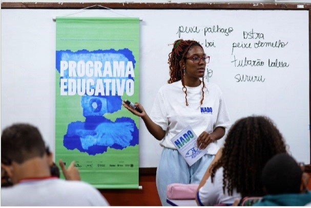 Dessa segunda-feira (21) até esta sexta-feira (25), a Escola Municipal de Ensino Fundamental (EMEF) Lenir Borlot, também localizada na região da Ilha das Caieiras, recebe a atividade educativa da programação. Em todas as suas propostas, NADO tem o mar como sujeito. Dessa forma, consciente de que o planeta vive atualmente a Década das Nações Unidas de Ciência Oceânica para o Desenvolvimento Sustentável, o projeto se compromete, com atividades educativas, a conscientizar e a incluir o público nesse debate.