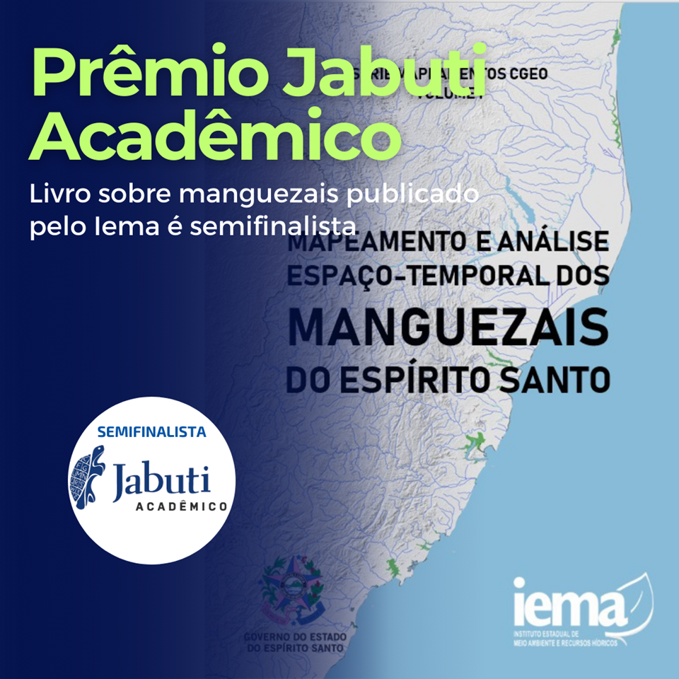 O livro “Mapeamento e análise espaço-temporal dos manguezais do Espírito Santo”, publicado pelo Instituto Estadual de Meio Ambiente e Recursos Hídricos (Iema) no ano passado, é um dos semifinalistas do Prêmio Jabuti Acadêmico. A obra concorreu com 1.953 outras publicações científicas de todo o Brasil e foi classificada para etapa final da premiação.
