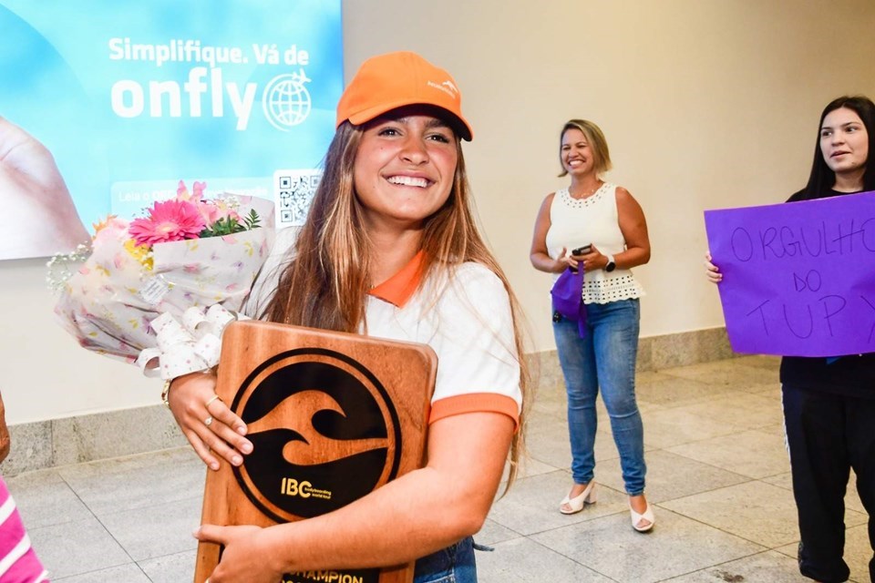Luna Hardman chega a Vitória após conquista do bicampeonato mundial de bodyboarding