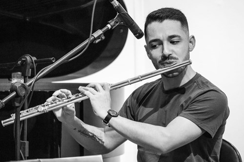 Duo formado por Rodrigo Frade (flauta) e Belquior Guerrero (violão). Rodrigo Frade é doutor em Música pela UFMG. Tem Mestrado em Performance Musical (2018) e bacharelado em Flauta (2014) pela mesma instituição. Deu início aos estudos musicais aos 7 anos no Conservatório de São João del Rei, MG. Atua como intérprete e organizador do Festival "Escuta Aqui!" desde sua criação em 2020. É professor de flauta transversal na Faculdade de Música do Espírito Santo.