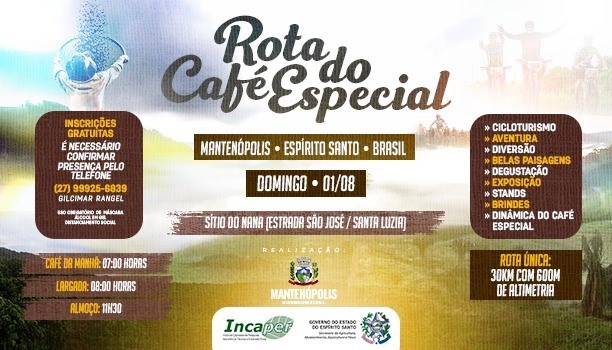 A Rota do Café Especial é realizada pelo Escritório Local de Desenvolvimento Rural (ELDR), do Instituto Capixaba de Pesquisa, Assistência Técnica e Extensão Rural (Incaper), e pela Prefeitura de Mantenópolis. As inscrições podem ser feitas pelo telefone (27) 9 9925-6839, com Gilcimar Rangel. A previsão é de que participem cerca de 250 pessoas, com distanciamento social e uso obrigatório de máscaras.