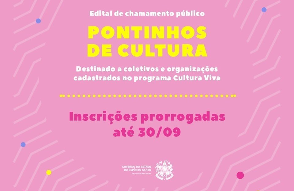 m virtude da instabilidade da Plataforma Rede Cultura Viva, a comprovação do cadastro para o Edital Pontinhos de Cultura passa a ser exigida apenas na Fase de Convocação, quando os candidatos selecionados poderão realizar retificações na forma de documentação complementar. Neste sentido, a apresentação de qualquer documento referente à Rede Cultura Viva, no ato da inscrição para esse edital no Mapa Cultural ES, fica dispensada.