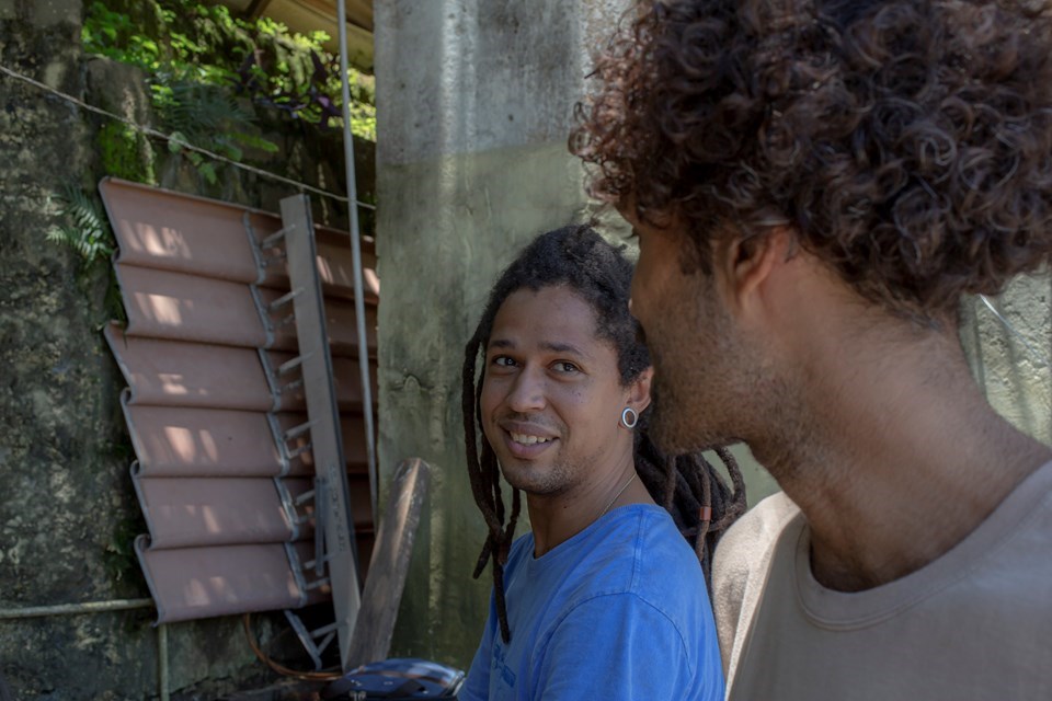 Apesar de trabalharem com técnicas e linguagens distintas, ambos desenvolveram juntos o projeto “De onde o olho mira” (2021), que consiste em um monumento de caráter público a Kitembo, inquice do tempo. Localizado no Quintal Bantu, no Morro da Fonte Grande, em Vitória, o projeto é realizado com ferro, madeira de embarcação naval e concreto de sururu.