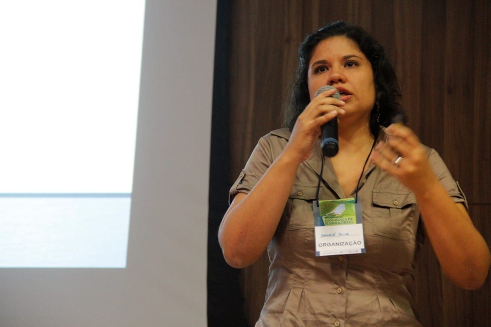 A engenheira de minas, mestre em Geotecnia, e pesquisadora da Gerência de Gestão e Infraestrutura Hídrica da Agerh, Andyara Duarte, falou sobre Segurança de Barragens, tema central do evento.
