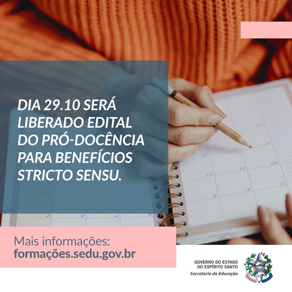 A Secretaria da Educação (Sedu), por meio do Centro de Formação dos Profissionais da Educação (Cefope), publicará, no Diário Oficial do Estado da próxima quinta-feira (29), o segundo edital de seleção para participação no Pró-Docência, programa prioritário do Governo do Estado destinado à qualificação profissional do servidor do magistério estadual efetivo, em nível de pós-graduação.