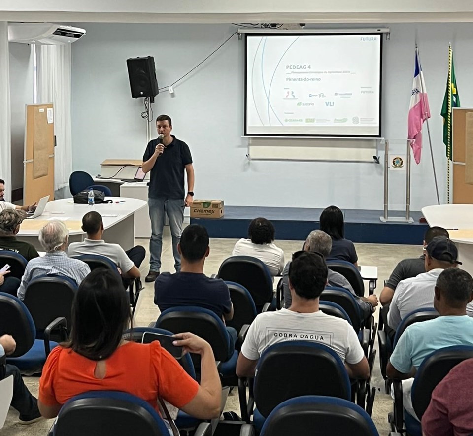 Dando continuidade às ações do Pedeag 4, o Governo do Estado, por meio da Secretaria da Agricultura, Abastecimento, Aquicultura e Pesca (Seag), realizou, nesta quinta-feira (13), mais uma oficina para a colaboração no Plano Estratégico de Desenvolvimento da Agricultura Capixaba (Pedeag 4). Desta vez, foi abordado o cenário atual e futuro da cadeia produtiva da pimenta-do-reino – cultivo em que o Espírito Santo é o maior produtor e exportador do Brasil. Na ocasião, produtores rurais e representantes do setor dialogaram e debateram os principais desafios e oportunidades.