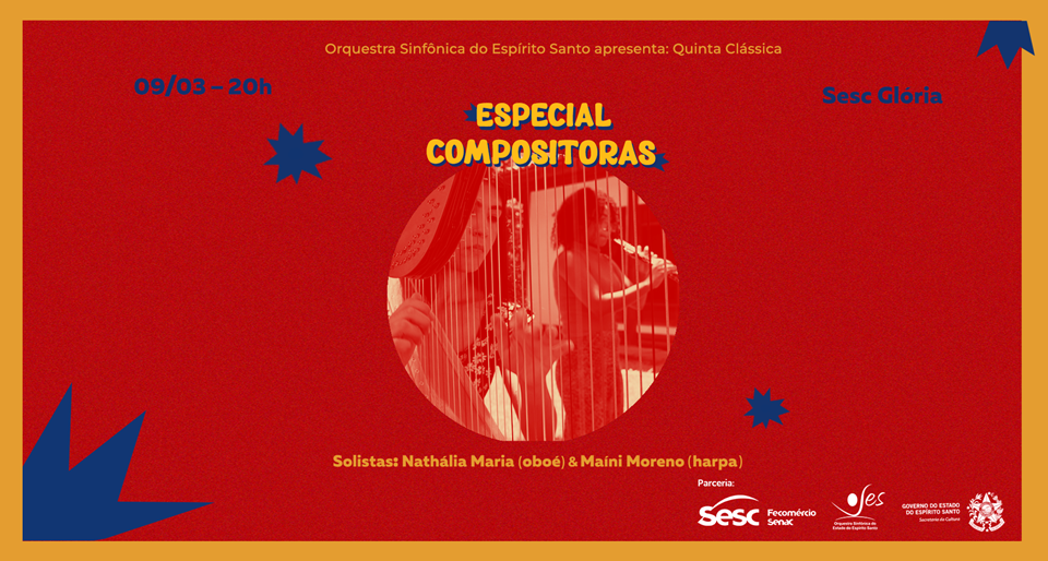 A Orquestra Sinfônica do Espírito Santo (Oses) apresenta, no próximo dia 09, um panorama da criação feminina ao longo da história da música clássica. O concerto acontece no palco do Teatro Glória, no Centro de Vitória, a partir das 20 horas. Com um repertório que reúne apenas obras de compositoras mulheres, o espetáculo terá como solistas a oboísta Nathália Maria e a harpista Maíni Moreno – ambas musicistas da orquestra.