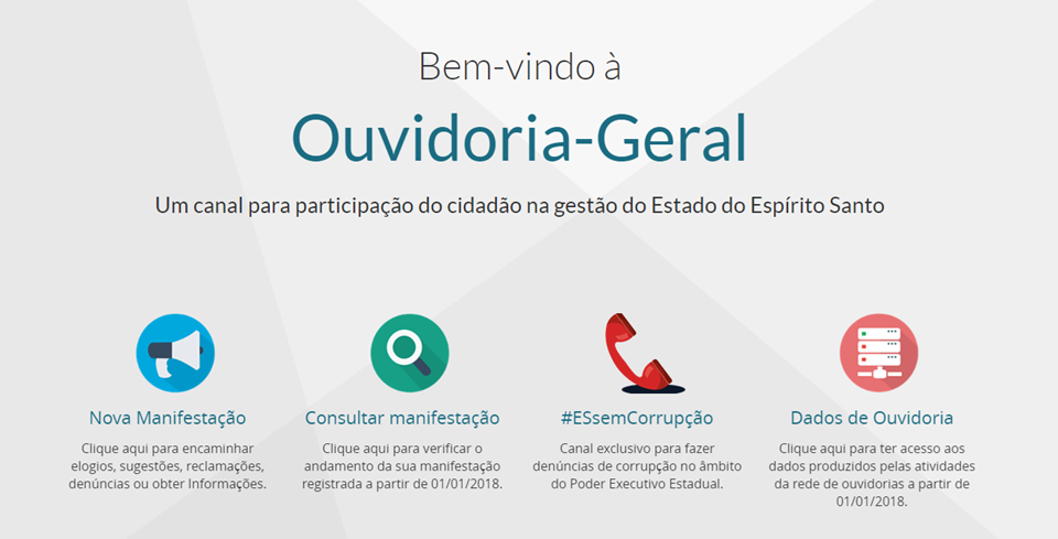 Todas as demais formas de atendimento continuam sendo realizadas normalmente. O cidadão pode fazer a sua manifestação no site ouvidoria.es.gov.br; pelo telefone 0800 022 11 17; pelo e-mail ouvidoria@es.gov.br; e pelo site do Reclama Aqui: cidadao.reclameaqui.com.br. Os prazos para resposta e recursos às reclamações, denúncias, sugestões e pedidos de informação não foram alterados.