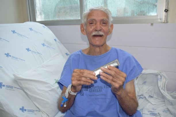 Paciente transforma rotina de enfermaria do Hospital Estadual Central tocando gaita