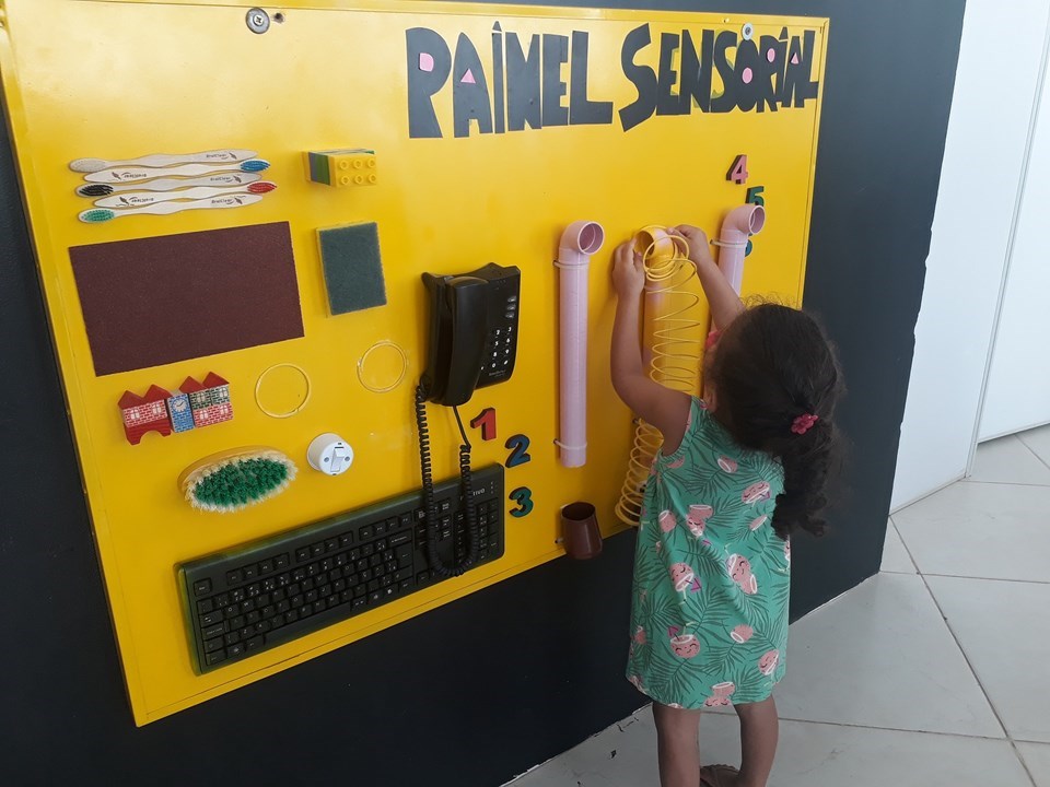 A construção do painel se deu com materiais disponibilizados e já em desuso do próprio CRE e, desde a sua instalação em abril deste ano, a profissional relata que percebeu mudanças na interação do público infantil.
