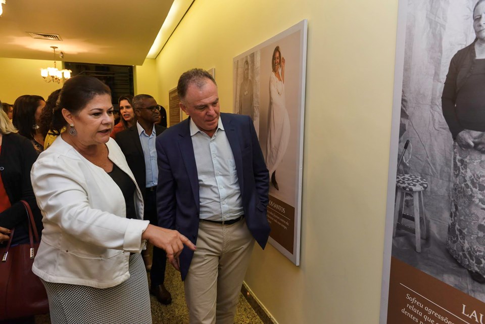 O governador do Estado, Renato Casagrande, e a primeira-dama, Virgínia Casagrande, abriram na noite desta sexta-feira (3) a exposição “Apolônias do Bem”, no Palácio Anchieta, em Vitória. A mostra fotográfica retrata mulheres que tiveram a dentição afetada por agressões. As imagens revelam o antes e depois do tratamento integral e também gratuito às vítimas da violência doméstica. A exposição vai até o dia 30 de junho e está aberta à visitação todos os dias, incluindo finais de semana e feriados.