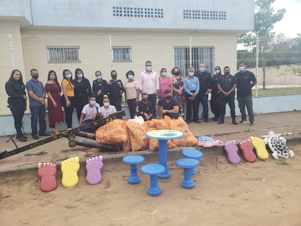 Com isso, o local recebeu um parquinho, com direito a gangorra e escorregador feitos em madeira, mesa com bancos decorados com o ciclo de reprodução das tartarugas, além de passeio e enfeites de jardim. Diversos materiais lúdicos e pedagógicos para auxiliar os professores da Educação Infantil em sala de aula também fizeram parte da entrega. Nesse contexto, estão fantoches, bonecos de contação de história, além de diversos jogos.