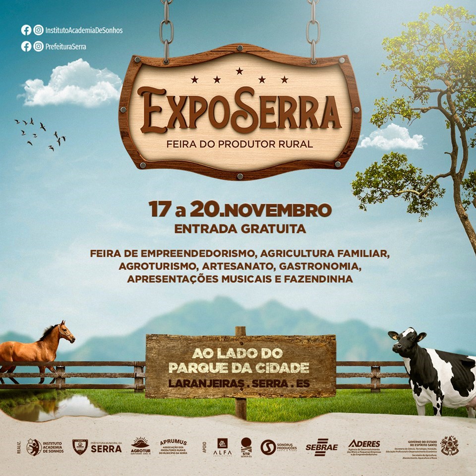 Com a finalidade de trazer o campo para a cidade, começa no próximo dia 17 deste mês, no Parque da Cidade, em Laranjeiras, na Serra, a Feira do Produtor Rural – ExpoSerra, que vai reunir em um só lugar agricultura familiar, agroturismo, artesanato, gastronomia e apresentações musicais, além de uma fazendinha. A ExpoSerra será aberta às 16 horas da próxima quinta-feira (17) e prossegue até as 18 horas do domingo (20). A entrada é gratuita.