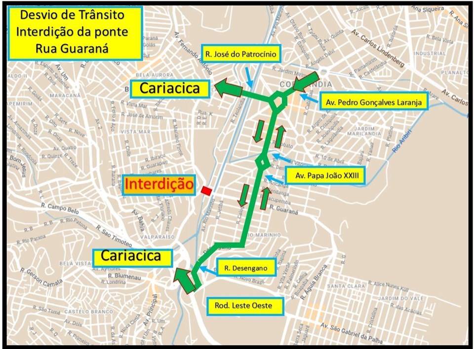 O Departamento de Edificações e de Rodovias do Espírito Santo (DER-ES) informa aos moradores da região de Vila Velha e Cariacica que, a partir desta quarta-feira (03), será interditada a ponte sobre o Rio Marinho. A interdição se faz necessária, uma vez que a ponte existente será demolida para a construção de uma nova.