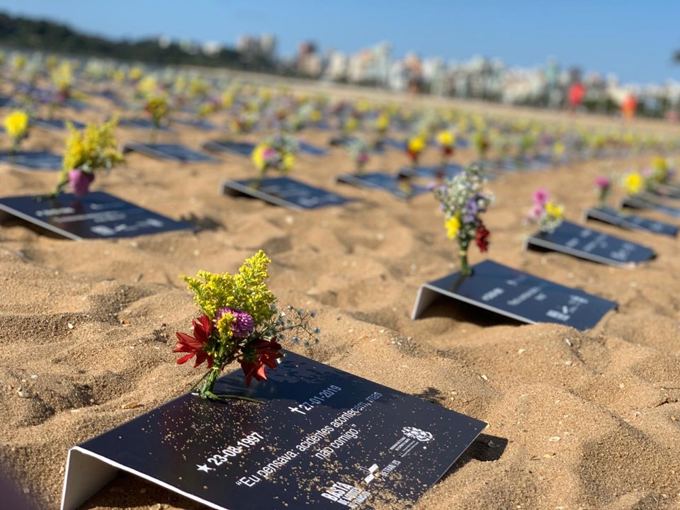 Praia de Camburi é cenário de ação para chamar atenção sobre mortes no trânsito