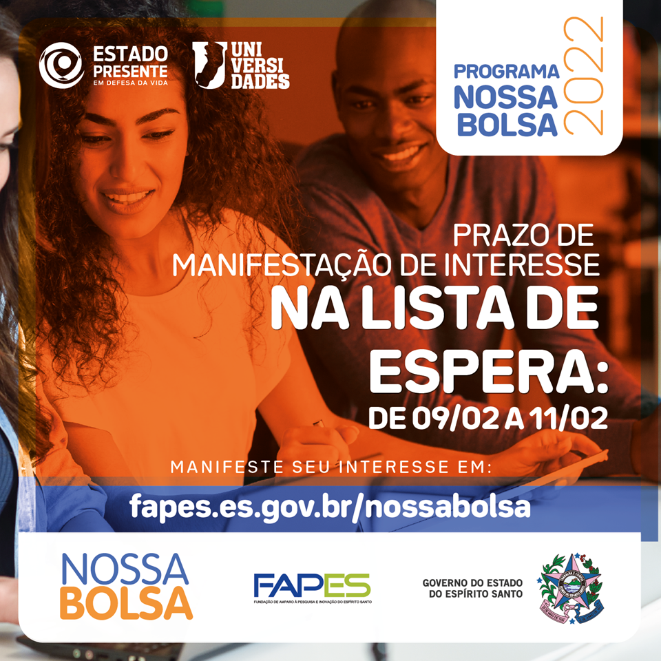 Os candidatos interessados em participar da lista de espera podem demonstrar o interesse por meio do site www.fapes.es.gov.br/nossabolsa até esta sexta-feira (11). O resultado será divulgado na próxima terça-feira (15), no mesmo site.