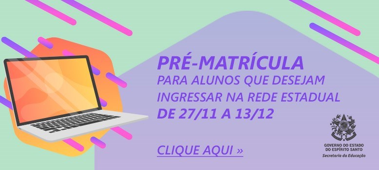 Quem não é aluno da Rede Estadual e deseja ingressar em uma das 448 escolas estaduais para o ano letivo de 2020 deve ficar atento. O período da pré-matrícula começa nesta quarta-feira (27) e vai até o dia 13 de dezembro. Para solicitar a vaga, basta acessar o site da Secretaria da Educação (Sedu) - www.sedu.es.gov.br CLIQUE AQUI , clicar no banner principal e fazer o cadastro.