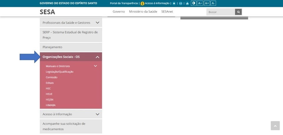 Ao clicar na aba “Organizações Sociais - OS”, na coluna esquerda do site da Sesa e escolher um dos respectivos links dos hospitais gerenciados (HEC, HEUE, HEJSN, HIMABA), haverá o botão “Processos de Contratação”, em que estão disponibilizados os documentos. A decisão vem garantir maior transparência nos processos realizados pelas OS, antes publicados apenas em seus próprios sites.