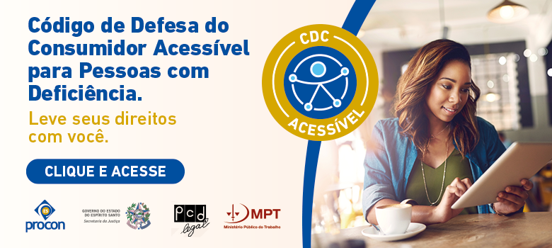 As pessoas com deficiências visual e auditiva já podem contar com um poderoso instrumento na defesa dos seus direitos de consumidor. Por meio dos sites procon.es.gov.br ou cdc.pcdlegal.com.br é possível acessar o Código de Defesa do Consumidor para pessoas com deficiência nas versões em libras, em áudio e livro digital.