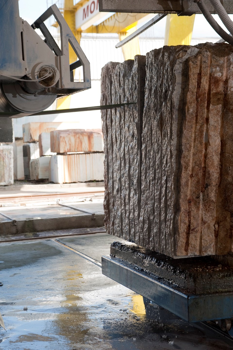 A cadeia produtiva envolve diferentes etapas: a lavra, ou seja, a extração dos blocos nas pedreiras; o beneficiamento primário, que consiste no desdobramento dos blocos em chapas; e beneficiamento secundário, que trata do polimento das chapas e da elaboração de produtos finais. Esses constituem os elos principais da cadeia produtiva, complementada por uma indústria de bens de capital e de fornecedores de insumos e serviços.