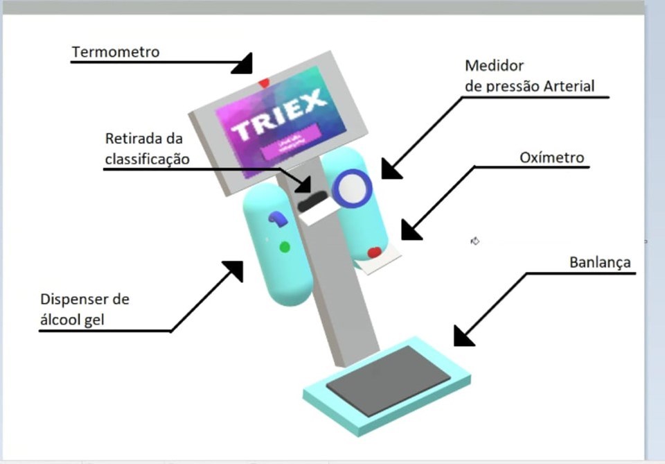 O “Triex” é um protótipo que irá agilizar o processo de triagem no atendimento aos hospitais, com as funções de medir a temperatura, aferir pressão, intensidade de dor e saturação sanguínea. “Com esse processo realizado pelo robô, se irá evitar aglomeração e disseminação do novo Coronavírus”, disse o aluno Bernardo Teixeira.