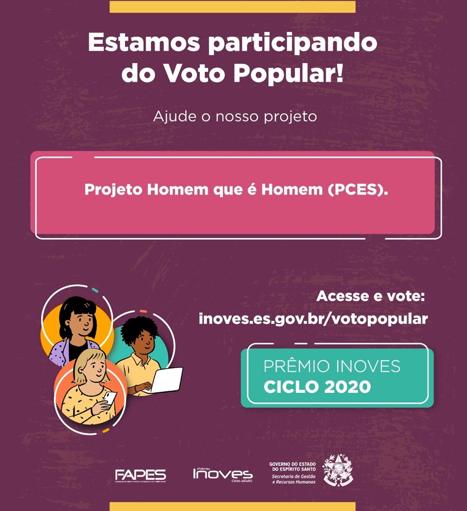 O projeto Homem que é Homem da Polícia Civil (PCES) é um dos finalistas do Prêmio Inovação na Gestão Pública do Estado do Espírito Santo (Prêmio Inoves), do Ciclo 2020. O projeto da PCES concorre na categoria Voto Popular, Projetos de Resultados do Poder Executivo Estadual. A votação teve início nessa quarta-feira (02) e segue até o dia 18 de dezembro no site https://inoves.es.gov.br/votopopular.