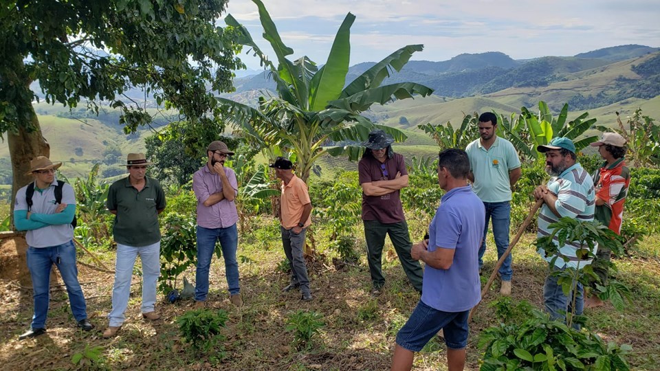 Famílias rurais conheceram mais detalhes técnicos a respeito dos Sistemas Agroflorestais (SAF) com café conilon, durante visita de intercâmbio de conhecimentos na unidade de pesquisa participativa (UPP) implantada na propriedade do produtor de café Júlio Celio Mendonça, localizada na comunidade de Santa Luzia, no município de Alegre. A propriedade é assistida pelo escritório local do Instituto Capixaba de Pesquisa, Assistência Técnica e Extensão Rural (Incaper) e serviu de modelo para as avaliações, de forma participativa, a respeito do desempenho do cafeeiro em cultivo arborizado e consórcio perene, buscando indicadores econômicos, sociais e ambientais.