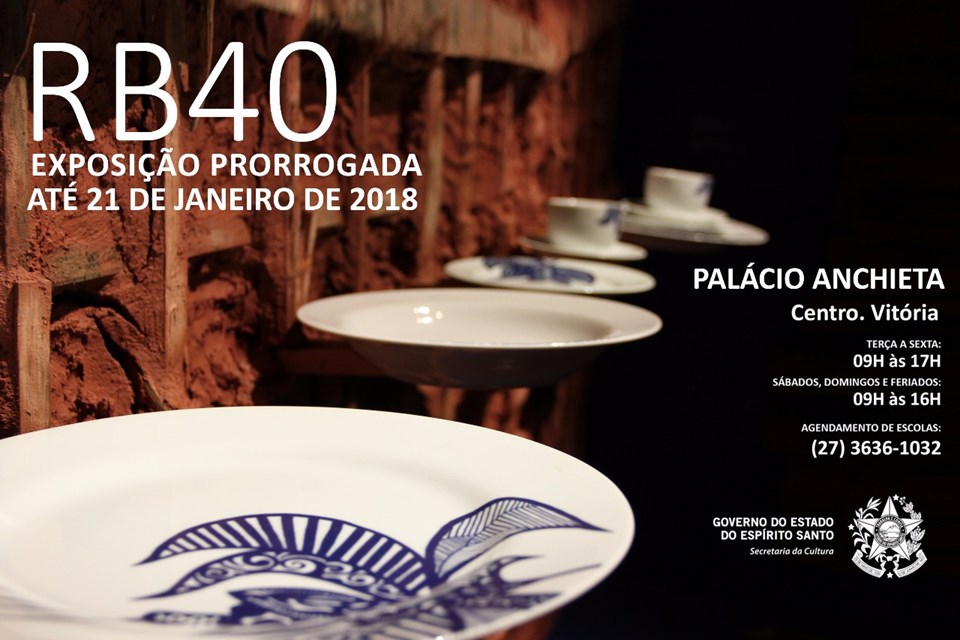 Devido ao grande sucesso de público, a exposição “RB40 – Ronaldo Barbosa 40 Anos de Arte e Design”, instalada no Palácio Anchieta, foi prorrogada até o dia 21 de janeiro de 2018. A mostra está aberta ao público há quatro meses e, nesse período, mais de 13 mil pessoas apreciaram a produção do artista e designer capixaba. A instalação ocupa sete salas do Palácio. A entrada é franca.