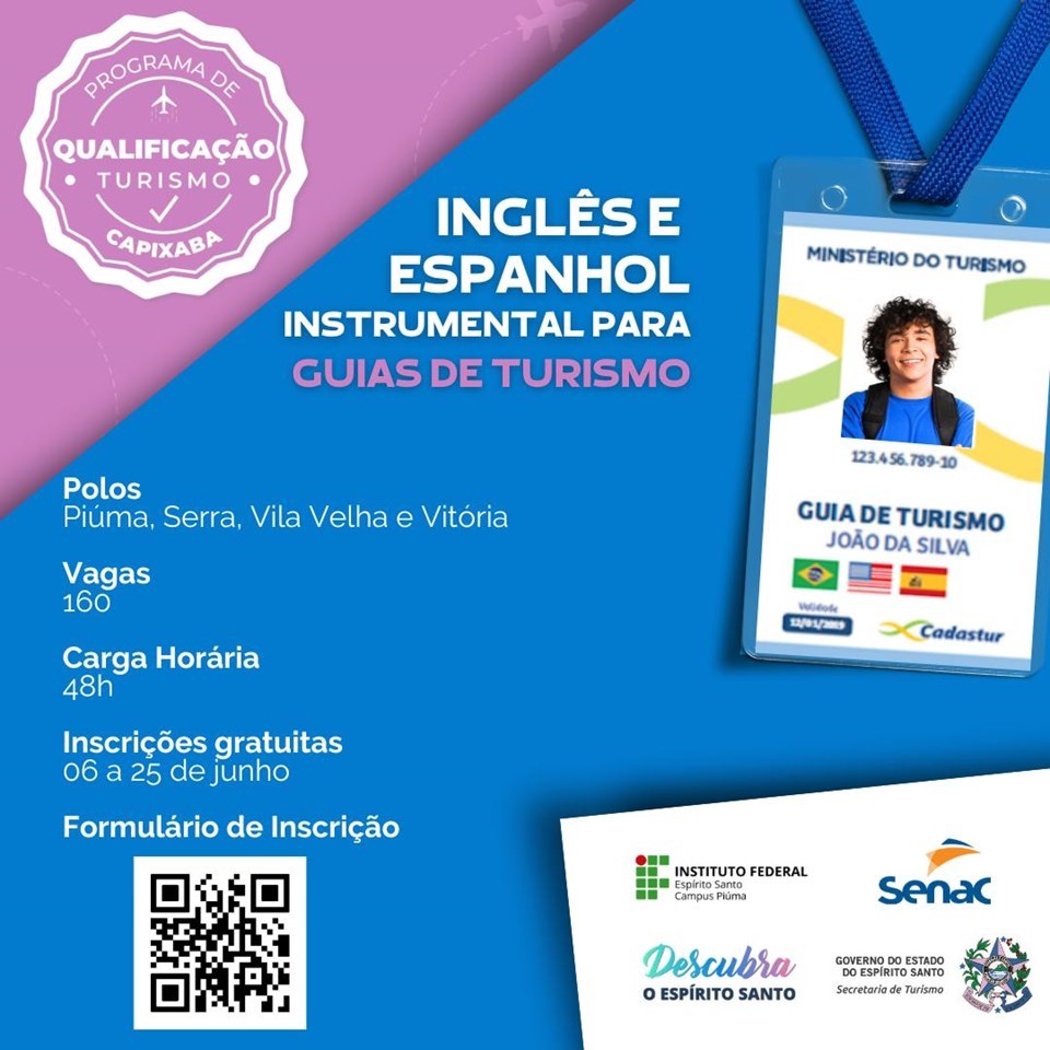 A formação é destinada aos guias de turismo da Categoria Regional com cadastro regular no CADASTUR, sistema de cadastro do Ministério do Turismo (MTur), que garante a validade do registro profissional por cinco anos. Os interessados devem atuar no Espírito Santo, ter no mínimo 16 anos e escolaridade mínima de Ensino Fundamental incompleto. Caso uma turma não complete as 20 vagas com guias de turismo da Categoria Regional, serão aceitas inscrições de guias de Categoria Excursão Nacional.