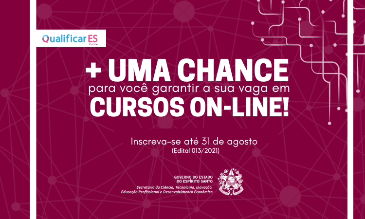 Novas oportunidades estão abertas para os capixabas interessados em realizar cursos on-line gratuitos do programa de qualificação profissional do Governo do Estado, o Qualificar ES, gerenciado pela Secretaria de Inovação e Desenvolvimento (Sectides). As inscrições começaram nesta sexta-feira (20) e seguem até o dia 31 de agosto, por meio do site www.qualificar.es.gov.br.