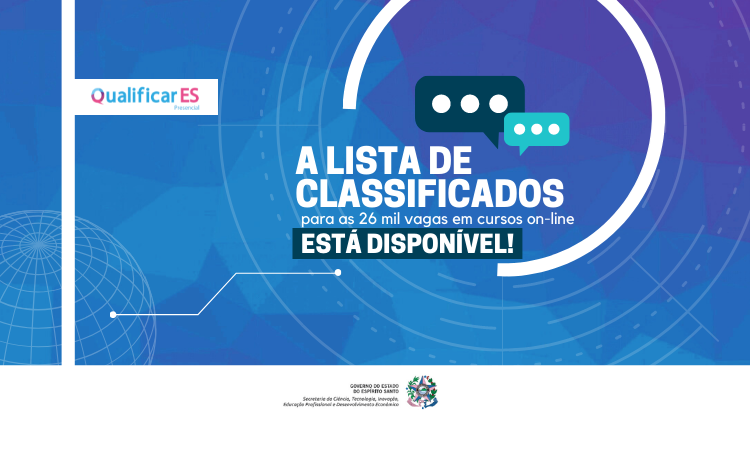 Foi divulgada, nesta quarta-feira (18), a lista de classificados para os cursos do Programa Qualificar ES On-line, destinados a moradores de todo o Estado. No total, 26 mil vagas foram disponibilizadas para 13 cursos profissionalizantes com carga horária de 120 horas.