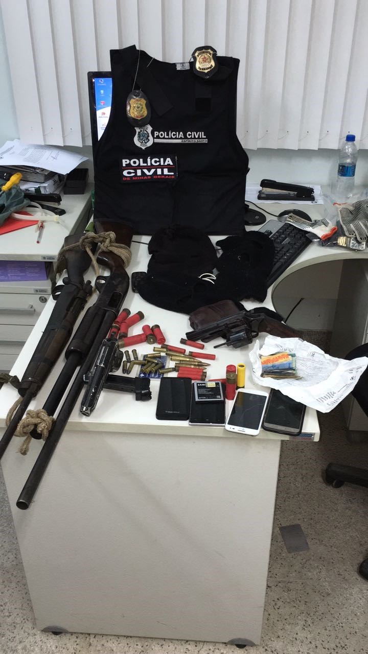 Marcos Nery ressaltou que além do cumprimento dos mandados de prisão também foram apreendidas várias armas, até mesmo de uso restrito das forças armada: um revólver calibre 32 com 12 munições, uma pistola calibre 380 e um carregador municiado, um mosquetão calibre 7,62 com quatro munições (uso restrito das forças armadas), uma espingarda calibre 12 com seis munições intactas e duas deflagradas. Os policiais também apreenderam seis celulares, seis cartuchos calibre 36 e um cartucho calibre 20, três toucas ninjas, um colete balístico e R$ 1.060,00.