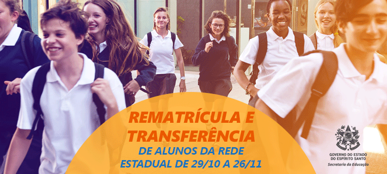 * O período de rematrícula e/ou solicitação de transferência interna, ou seja, para os alunos que já são da Rede Estadual, será de 29/10 a 26/11;
