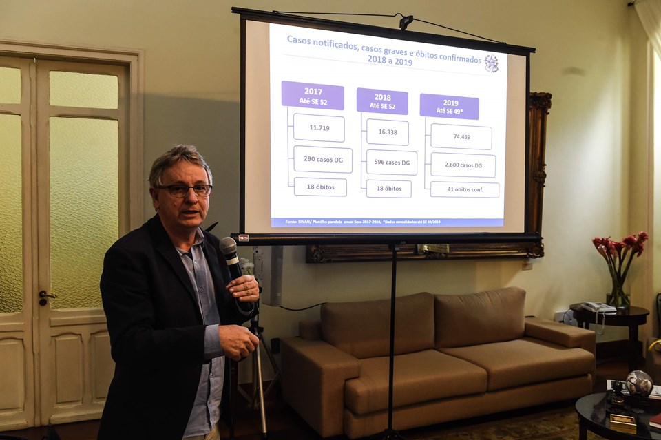 A apresentação dos índices da doença foi realizada pelo superintendente Regional de Saúde Metropolitano, Luiz Carlos Reblin, que mostrou que em 2019, por mais de 30 semanas, o Espírito Santo apresentou altos índices de notificação da doença. “É diferente do que vinha ocorrendo antes e a gente começa a ver com muita preocupação. Pois indica que a dengue vai durar praticamente o ano inteiro”, disse.