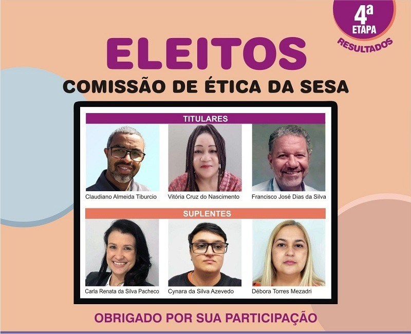 Após cinco dias de votação aberta, os servidores da Secretaria da Saúde (Sesa) escolheram os integrantes, entre os 28 concorrentes, da Comissão de Ética da Sesa. São três membros titulares e os respectivos suplentes.