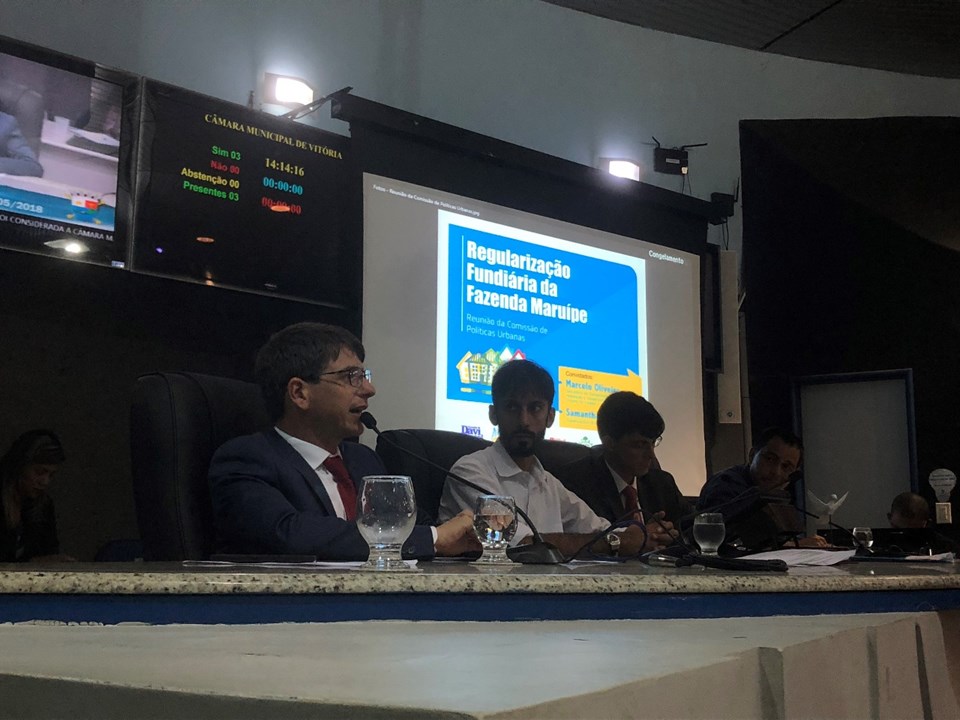 “A lei 10.796/17 permitiu ao Governo do Estado legitimar e alienar as áreas pertencentes ao Estado. Esse foi o caso da Fazenda Maruípe, que possui um trabalho em andamento. Outro passo importante foi a autorização do governador para a contratação do levantamento topográfico. Cerca de 8 mil imóveis serão contemplados e 32 mil moradores beneficiados”, enfatizou Marcelo. O evento foi realizado na Câmara de Vitória e contou com a presença de vereadores, líderes comunitários e demais autoridades.