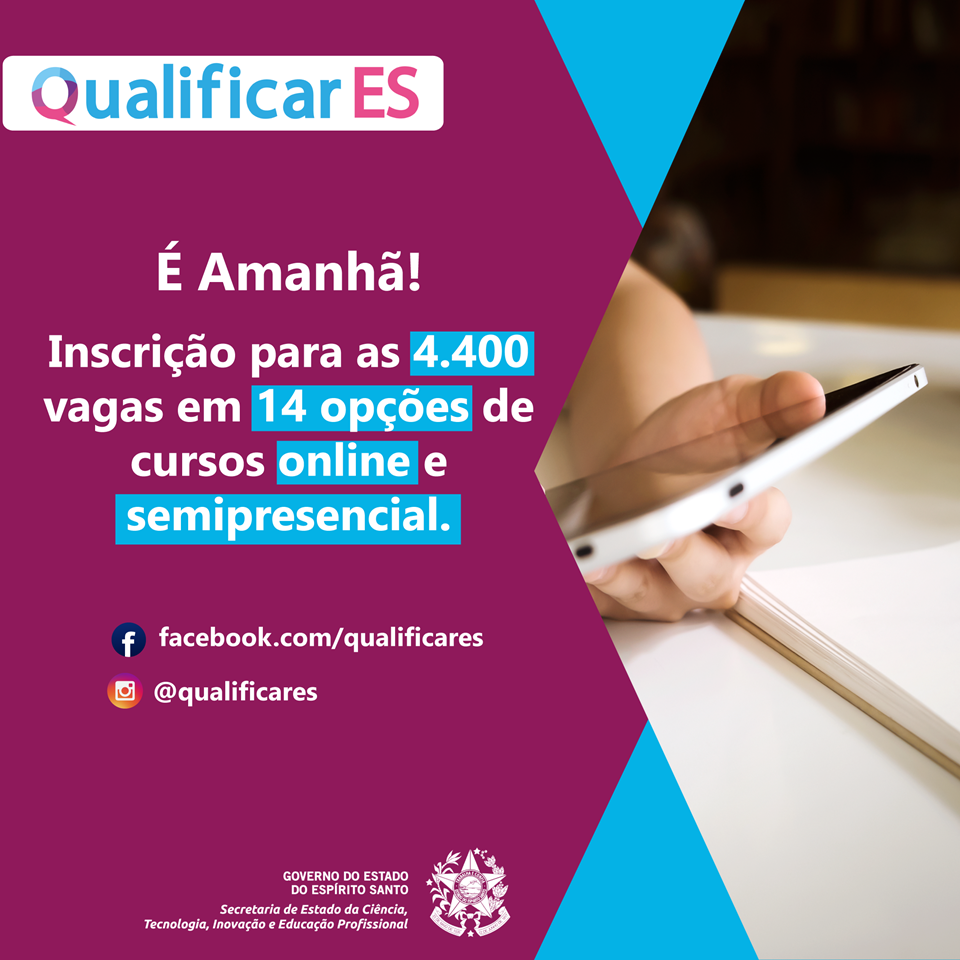 Para se inscrever basta acessar o sítio eletrônico www.qualificar.es.gov.br e preencher corretamente o formulário de inscrição. A inscrição não é editável e termina no dia 15 de julho. Os resultados dos cursos semipresenciais serão divulgados no dia 25 de julho, já da oferta online no dia 26 julho. Ambos no site do programa.