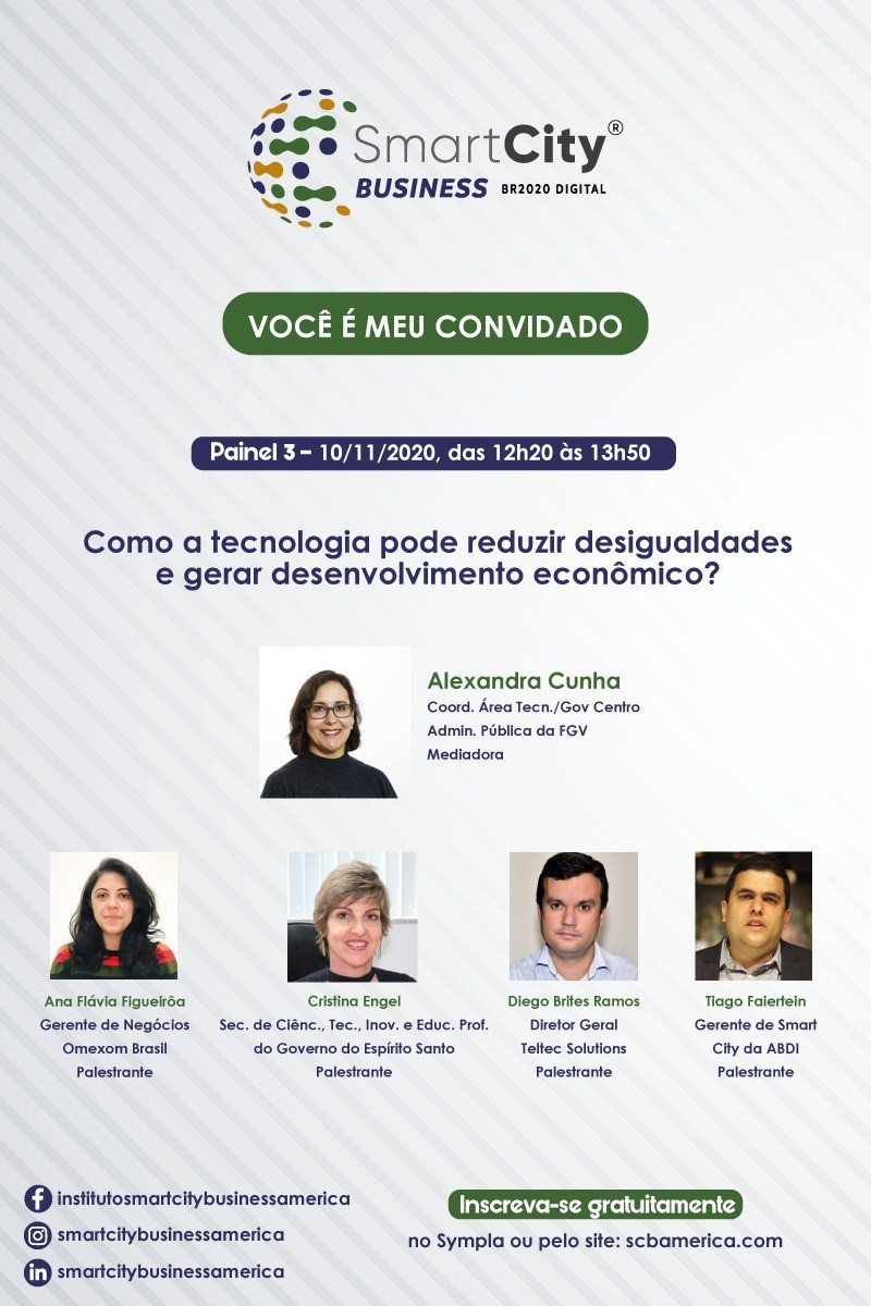 A Secretaria da Ciência, Tecnologia, Inovação e Educação Profissional (Secti) participou de um debate sobre cidades inteligentes, promovido pelo Instituto Smart City Business America (SCBA), na tarde desta terça-feira (10). O evento virtual faz parte da programação do Smart City Business Brazil Congress 2020 DIGITAL, que conta com palestrantes nacionais e internacionais, especialistas na área.