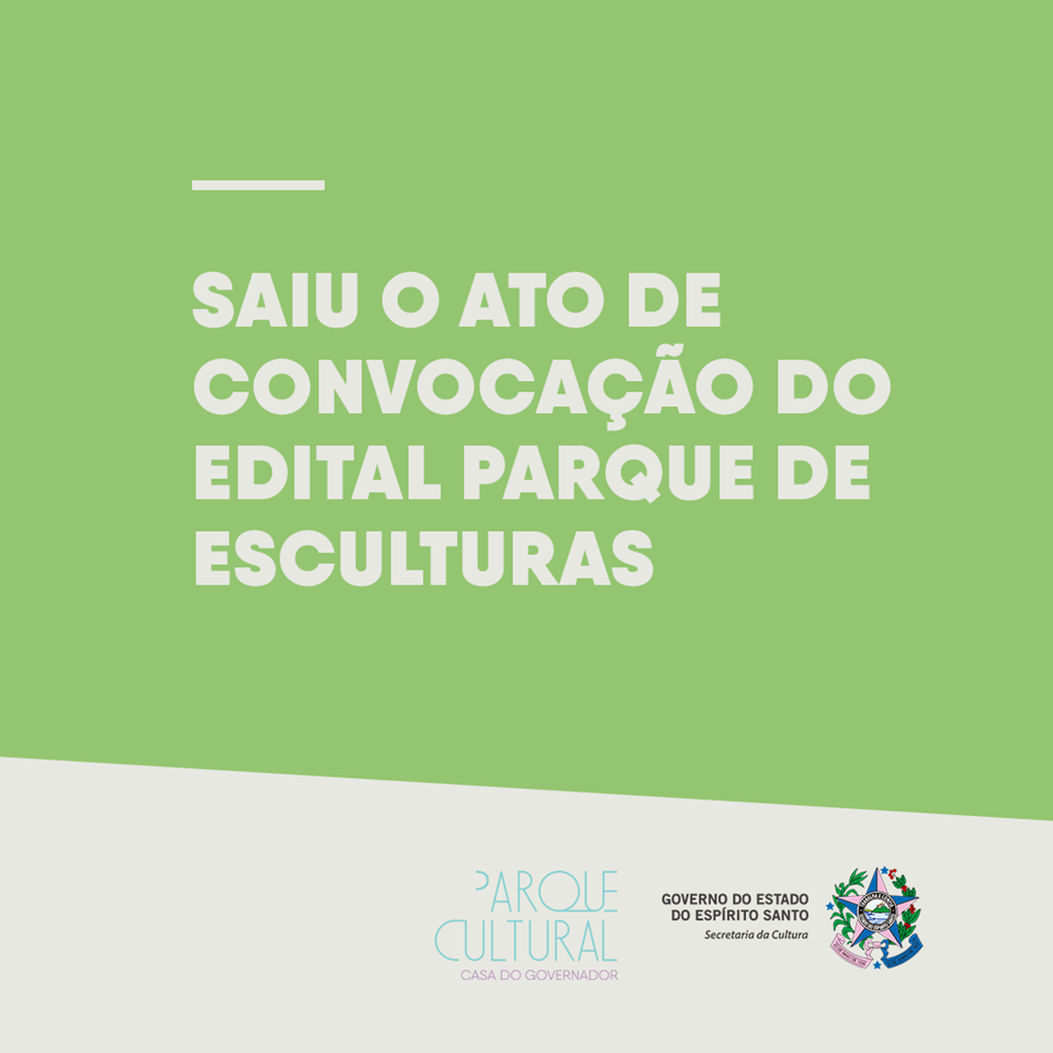 A Secretaria da Cultura (Secult) publicou, nesta segunda-feira (22), o ato de convocação do resultado do Edital 001/2021 – Seleção de propostas artísticas para a implementação do parque de esculturas, referente à parte das atrações do projeto “Parque de Esculturas da Residência Oficial do Governo do Estado”, na Praia da Costa, em Vila Velha.
