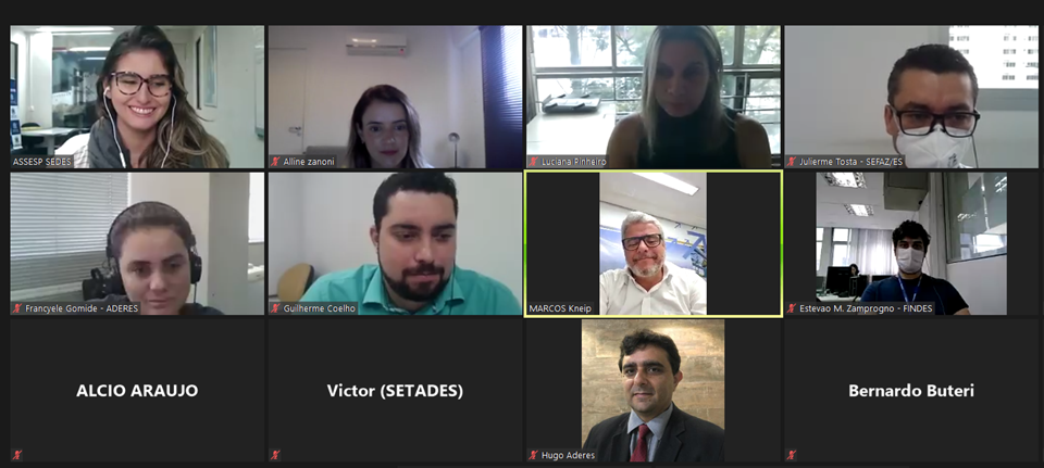Entre os presentes à reunião estiveram o coordenador suplente da Secretaria de Desenvolvimento, Guilherme Coelho; Marcos Américo Villas Bôas, da Escola de Serviço Público do Espírito Santo (Esesp); Aline Zanoni Batista e Bernardo Buteri, do Serviço Brasileiro de Apoio às Micro e Pequenas Empresas (Sebrae); Julierme Gomes Tosta e Andressa Buss, da Secretaria da Fazenda (Sefaz); Estevão Mascarenhas Zamprogno, da Federação das Indústrias do Espírito Santo (Findes); Francyele Gomide e Hugo Tóffoli, da Agência de Desenvolvimento das Micro e Pequenas Empresas e do Empreendedorismo (Aderes); Alcio de Araujo, do Banco do Estado do Espírito Santo (Banestes); Victor Nunes Toscano, da Secretaria de Trabalho, Assistência e Desenvolvimento Social (Setades), e Luciana Lopes Pinheiro, da Secretaria de Gestão e Recursos Humanos (Seger).
