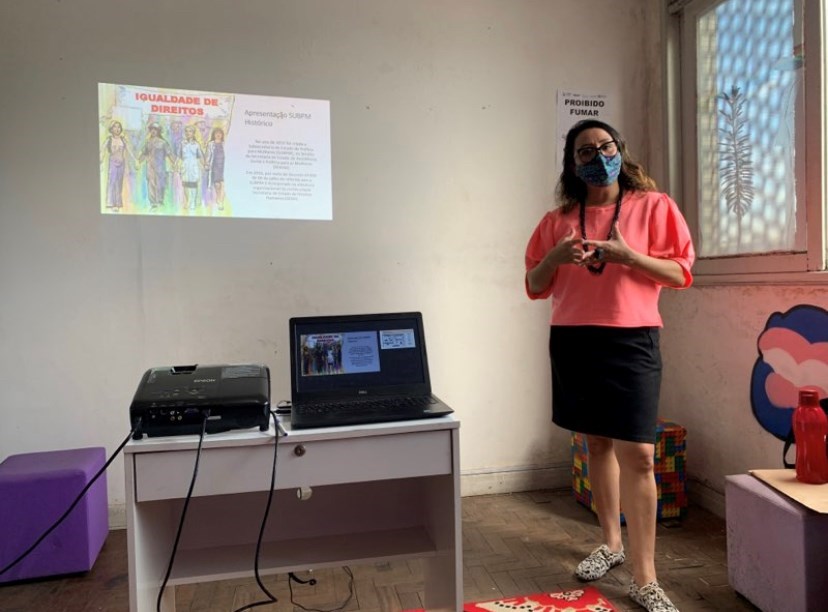A palestra foi apresentada para parte da equipe da Associação GOLD, no espaço chamado Aconchego (Centro de Cidadania e Formação LGBTI+). Na apresentação, a subsecretária Juliane Barroso fez um breve histórico sobre a luta pela igualdade de direitos para as mulheres até os dias atuais e também expôs dados relacionados aos casos de violência doméstica e de feminicídio no Estado do Espírito Santo.