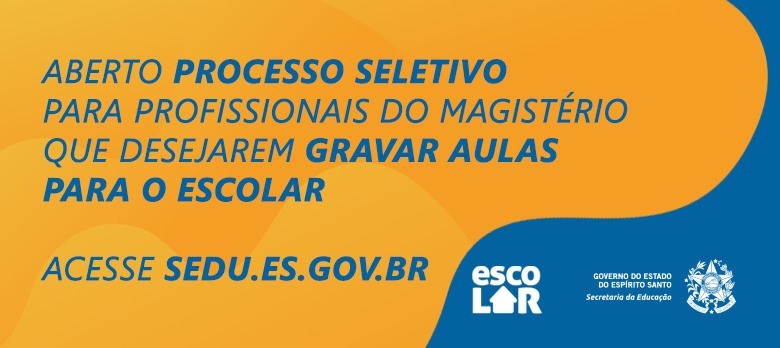 A Secretaria da Educação (Sedu) abriu um processo seletivo destinado aos profissionais do magistério público do Estado do Espírito Santo para a gravação de aulas do Programa EscoLAR. As inscrições estão abertas a partir desta sexta-feira (04) e seguem até as 12 horas do dia 14 de setembro, e podem ser feitas via formulário de inscrição: clique aqui.