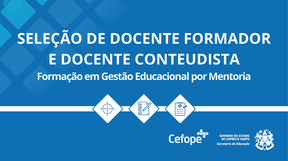 A proposta é selecionar profissionais qualificados para colaborar na elaboração de materiais didático-pedagógicos, bem como na mediação dos encontros síncronos promovidos pelo Centro de Formação dos Profissionais da Educação (Cefope), em parceria com a Gerência do Regime de Colaboração com os Municípios (Gerco), que têm como público-alvo os superintendentes Regionais de Educação, assessores do Regime de Colaboração, secretários municipais de Educação e coordenadores municipais Pacto pela Aprendizagem no Espírito Santo (Paes).