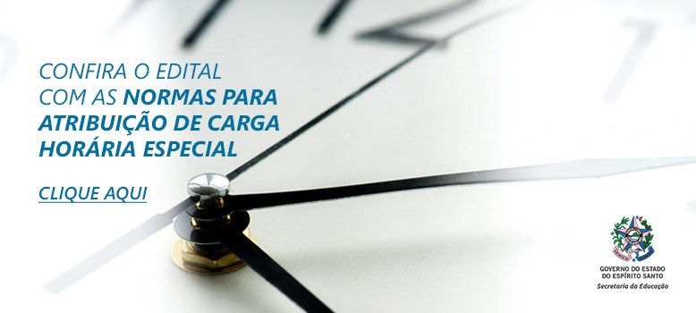 A Secretaria da Educação (Sedu) divulgou as normas para atribuição de Carga Horária Especial (CHE) a professores efetivos da Rede Estadual. Os profissionais interessados em participar do processo de atribuição da CHE no decorrer do ano letivo de 2020 devem efetivar seu cadastro no Sistema Online de CHE, por meio do Portal do Servidor, no endereço eletrônico www.servidor.es.gov.br, a partir da próxima segunda-feira (20). Clique AQUI.