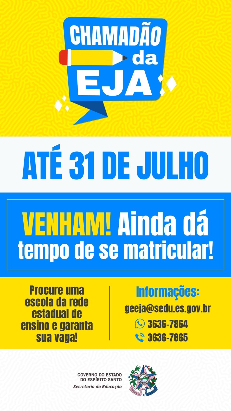 “As matrículas seguem abertas durante todo o ano, tanto na modalidade presencial quanto semipresencial, disponível nos Centros de Educação de Jovens e Adultos (CEEJA) e nos Núcleos de EJA, localizados em Vitória, Colatina, Cachoeiro de Itapemirim e Linhares”, pontuou Mariane Berger.